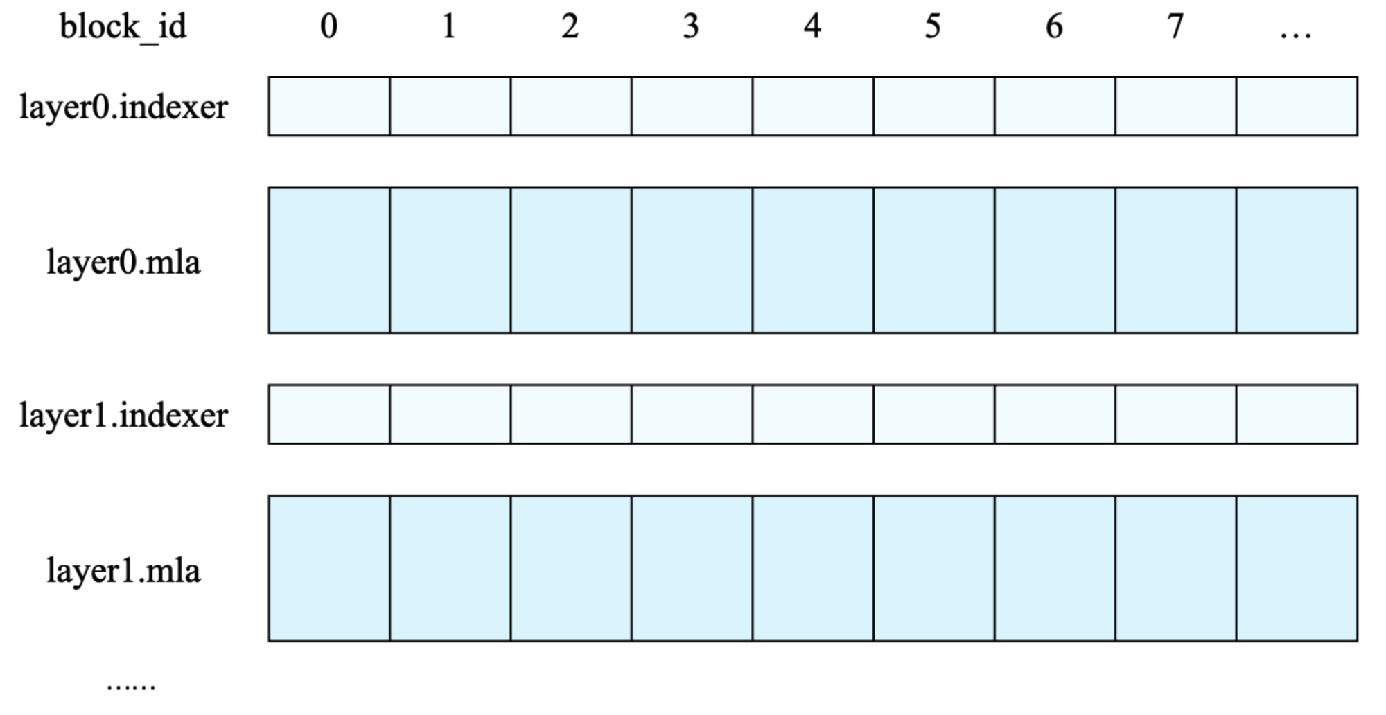 The lightning indexer module has cached K values specifically for indexing. This means for each token, there’s now another K cache used by the indexer. vLLM allocates separate buffers to save the indexer K cache separated from MLA K cache.
